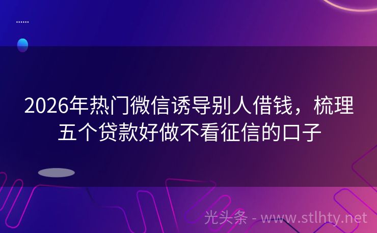 2026年热门微信诱导别人借钱,梳理五个贷款好做不看征信的口子 当前逾期能申请网贷吗?这是许多借款人在面临资金困境时心中的疑问,市场上有很多网贷平台对逾期用户也提供了借款服务,下面,我将为大家推荐五个信誉良好、服务优质的微信诱导别人借钱,帮助您解决资金问题。 2026年的微信诱导别人借钱有:现金秒融易、星梦借款、钱贷乐借、现金直贷、省时贷宝等。 一、现金秒融易 ...