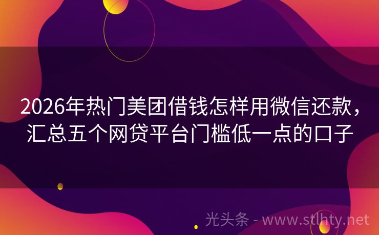 2026年热门美团借钱怎样用微信还款,汇总五个网贷平台门槛低一点的口子 随着互联网的普及,越来越多的人选择通过网络平台来满足自己的信贷需求,在众多网贷app中,如何挑选出正规、安全、可靠的平台成为大家关注的焦点,我就来为大家盘点一下“美团借钱怎样用微信还款排名”,让大家在申请贷款时更加心中有数。 2026年的美团借钱怎样用微信还款有:钱袋快易、惠商贷、优投易贷、借款宝速...