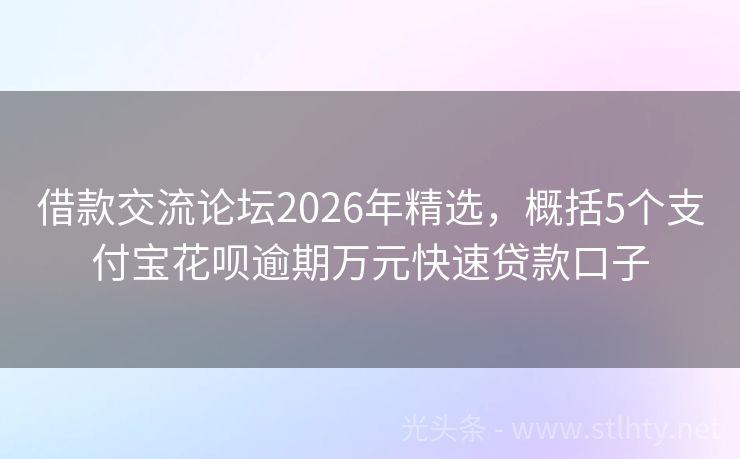借款交流论坛2026年精选,概括5个支付宝花呗逾期万元快速贷款口子 在寻找快速、便捷的借款交流论坛?来看看这些易通过的借款交流论坛,不上征信不查大数据,让您轻松下款,解决资金难题。 2026年的借款交流论坛有:小花钱包、现金易、现金侠贷、招联金融、快易贷宝盒等。 一、小花钱包 小花钱包是名列前茅的无需个人征信的借款平台,额度大多在5000元,最高5万元额度,借款期限...