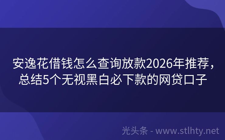 安逸花借钱怎么查询放款2026年推荐,总结5个无视黑白必下款的网贷口子 寻找便捷可靠的网贷资源?这里有五大优选安逸花借钱怎么查询放款,以高效率著称,让贷款过程轻松无忧。无论需求大小,都能快速响应,助您轻松跨越财务障碍。那么网贷好下的安逸花借钱怎么查询放款有哪些?整理5个容易放款的安逸花借钱怎么查询放款。 2026年的安逸花借钱怎么查询放款有:琉璃买单、甄宝分期宝、闪电侠...