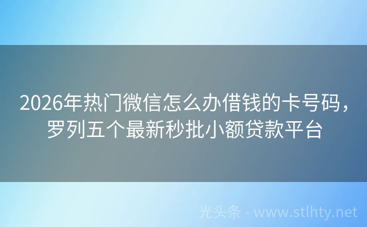 2026年热门微信怎么办借钱的卡号码,罗列五个最新秒批小额贷款平台 大家好,最近有很多人在问:“碧桂园投诉电话是多少?总部的投诉电话哪些是免费的?”在金融领域,遇到问题时,选择一个可靠的平台进行投诉或咨询同样重要,我就来为大家推荐五个信誉良好、服务优质的微信怎么办借钱的卡号码。下面,就让我为大家详细介绍这些平台的额度、优势和特色服务。 2026年的微信怎么办借钱的卡...