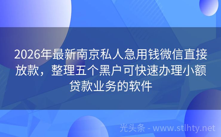 2026年最新南京私人急用钱微信直接放款,整理五个黑户可快速办理小额贷款业务的软件 轻松贷款,不再难!我们精选5大低门槛南京私人急用钱微信直接放款,专为花户、黑户设计,让资金难题不再是障碍。快速审批,灵活额度,助您一臂之力,解决燃眉之急。现在就来申请,开启您的财务自由之旅! 2026年的南京私人急用钱微信直接放款有:极速易借、花呗速借、微粒宝盒、现金易融、迅达Pro钱包等。 一、极...