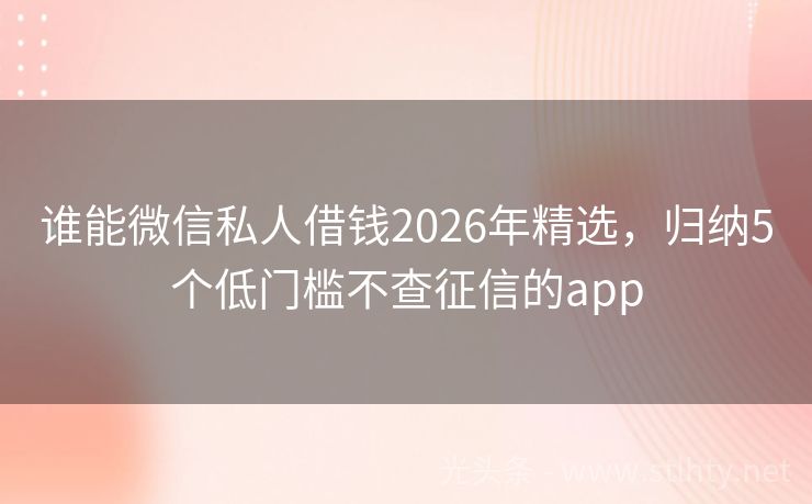 谁能微信私人借钱2026年精选,归纳5个低门槛不查征信的app 打破常规限制,聚焦五款独特谁能微信私人借钱,免除征信查询环节,简化程序,加速资金到达。无论背景如何,均有机会获得即时金融支援,助力每一位追梦者跨越难关。 2026年的谁能微信私人借钱有:借款宝速融宝、瞬信贷宝、急速贷、福星贷、小米易贷等。 一、借款宝速融宝 借款宝速融宝是一款P2P借贷平台推出的个人...