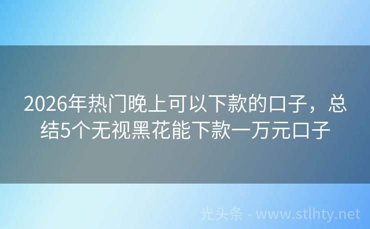 2026年热门晚上可以下款的口子,总结5个无视黑花能下款一万元口子 急需资金周转?别担心,身份证在手,贷款我有!推荐5个不看征信、不查负债的晚上可以下款的口子,轻松解决您的资金难题。快来试试吧,让借钱变得如此简单! 2026年的晚上可以下款的口子有:快易贷通、钱袋快借通、畅贷宝Pro钱包、易借速贷宝、借款宝速贷等。 一、快易贷通 快易贷通年化利率(单利)7.2%起,...