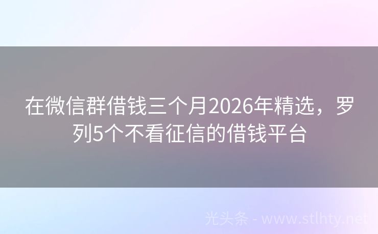 在微信群借钱三个月2026年精选,罗列5个不看征信的借钱平台 “逾期征信差在哪可以借款?”这是许多朋友在信用记录不完美时面临的难题,就让我来为大家推荐几个专门为有逾期记录或征信不佳的用户开放的在微信群借钱三个月,让您在资金周转上不再犯难。 2026年的在微信群借钱三个月有:畅贷钱包、疾融宝盒、口袋宝、闪借侠、百度有钱花等。 一、畅贷钱包 畅贷钱包是最可靠的小额...