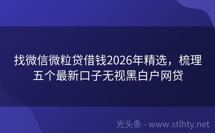 找微信微粒贷借钱2026年精选,梳理五个最新口子无视黑白户网贷 对于当下热衷于尝试现金贷APP的用户来说,选择一个既安全又便捷的贷款平台至关重要,我就为大家详细介绍一下市面上备受好评的几个现金贷APP,帮助大家找到最适合自己的找微信微粒贷借钱。 2026年的找微信微粒贷借钱有:洋洋花呗通、瞬下分期、瞬借宝融、易贷通宝、金易Pro钱包等。 一、洋洋花呗通 洋洋花呗...