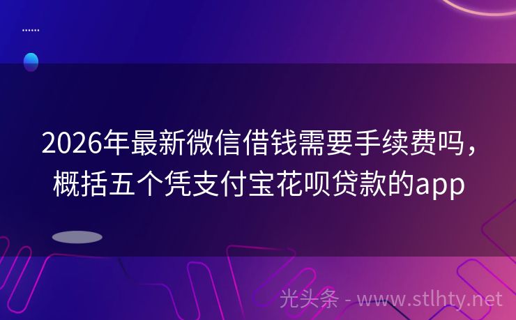2026年最新微信借钱需要手续费吗,概括五个凭支付宝花呗贷款的app “征信花了,借钱无门?”这是许多朋友心中的疑虑,即便征信记录不佳,也有一些平台愿意为您提供借款服务,我就为大家推荐五个实力派微信借钱需要手续费吗,让您在急需资金时不再犯难。 2026年的微信借钱需要手续费吗有:翡翠信贷、花呗、甄易贷、速贷侠通、度小满金融等。 一、翡翠信贷 翡翠信贷为用户提供20万的...