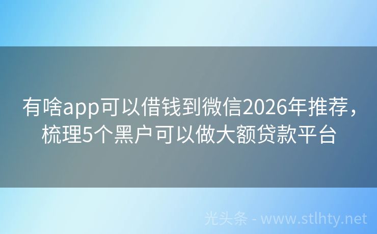有啥app可以借钱到微信2026年推荐,梳理5个黑户可以做大额贷款平台 探索几家备受推崇的小额贷款有啥app可以借钱到微信,以简便流程、快速审批赢得广泛青睐。无论日常生活急需或是突发开销,都能在此找到适合的解决方案,助您轻装前行,无惧任何挑战。 2026年的有啥app可以借钱到微信有:畅易钱包、易借速贷宝、易贷宝、融悦贷钱包、现金侠快借融等。 一、畅易钱包 畅易钱包贷款...