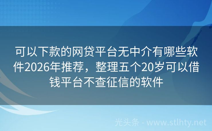 可以下款的网贷平台无中介有哪些软件2026年推荐,整理五个20岁可以借钱平台不查征信的软件 “可以下款的网贷平台无中介有哪些软件”,这是许多人在面对资金压力时最想知道的答案。无论是家庭开支还是个人消费,资金总是让人头疼的问题。不过别担心,我为大家准备了几家信誉良好、服务优质的借贷平台,它们额度高、放款快,而且利率合理,让你在借款的同时,也能感受到贴心的服务。 2026年的可以下款的网贷平台...
