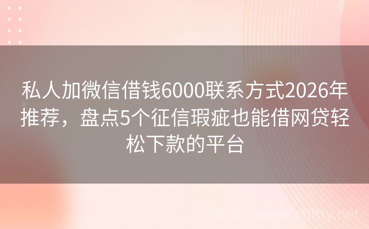 私人加微信借钱6000联系方式2026年推荐,盘点5个征信瑕疵也能借网贷轻松下款的平台 找寻那扇为你敞开的大门?五个私人加微信借钱6000联系方式,即便数据复杂,亦能顺利下款,为你的需求带来一线生机。这些私人加微信借钱6000联系方式采用先进的评估机制,超越常规,为每位申请人量身定制解决方案,让资金不再成为阻碍梦想的绊脚石。 2026年的私人加微信借钱6000联系方式有:天天富、金易钱...