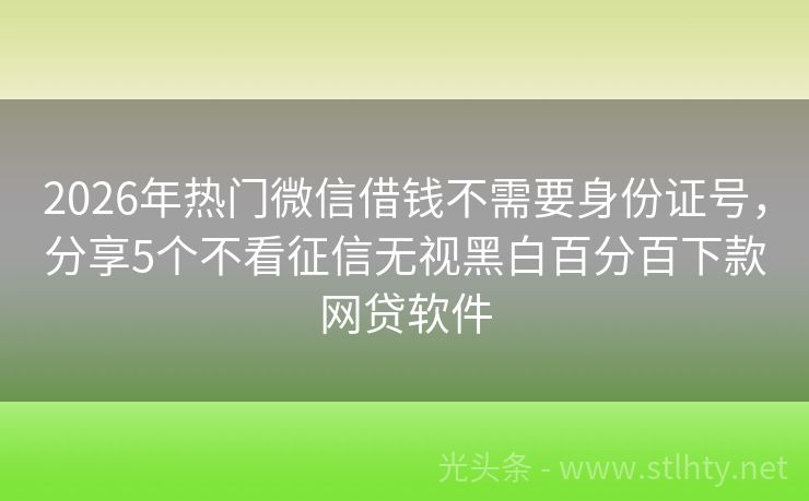 2026年热门微信借钱不需要身份证号,分享5个不看征信无视黑白百分百下款网贷软件 精心挑选,三家认可度高的驾驶证微信借钱不需要身份证号亮相,以其高效审核机制,无需繁琐手续,助您迅速获取所需资金。让驾驶证不再是简单的身份象征,而是开启财务便利之门的金钥匙。 2026年的微信借钱不需要身份证号有:乐借宝融、现金骑士、乐享Pro钱包、现金易贷通途、洋洋借呗等。 一、乐借宝融 乐借宝融也...