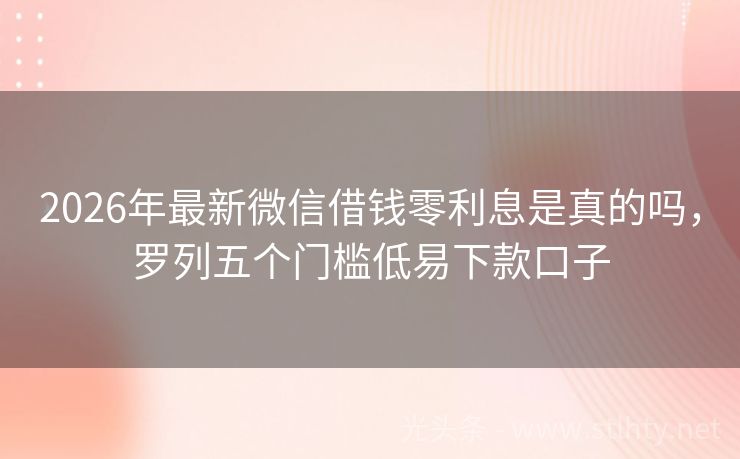 2026年最新微信借钱零利息是真的吗,罗列五个门槛低易下款口子 一款名为“微信借钱零利息是真的吗”的金融产品在市场上引起了广泛关注,据悉,这款网贷产品最大的特点是不看征信,为广大用户提供了一条便捷的贷款途径,这一新趋势在金融市场上引发了热烈讨论。 2026年的微信借钱零利息是真的吗有:分期乐借款、小米粒、汇融钱包+、钱袋快易融、甄易借通等。 一、分期乐借款 分期...