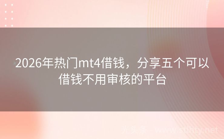 2026年热门mt4借钱,分享五个可以借钱不用审核的平台 “大家好,今天咱们聊一聊“mt4借钱”这个话题,在现实生活中,很多朋友因为征信记录不佳,想要贷款买车时遇到了难题,不用担心,今天我为大家推荐五个的mt4借钱,它们专为有征信问题的用户提供服务,帮助大家顺利实现购车梦,让我们一起来看看这五个平台的具体情况吧!” 2026年的mt4借钱有:速享钱包、易贷...