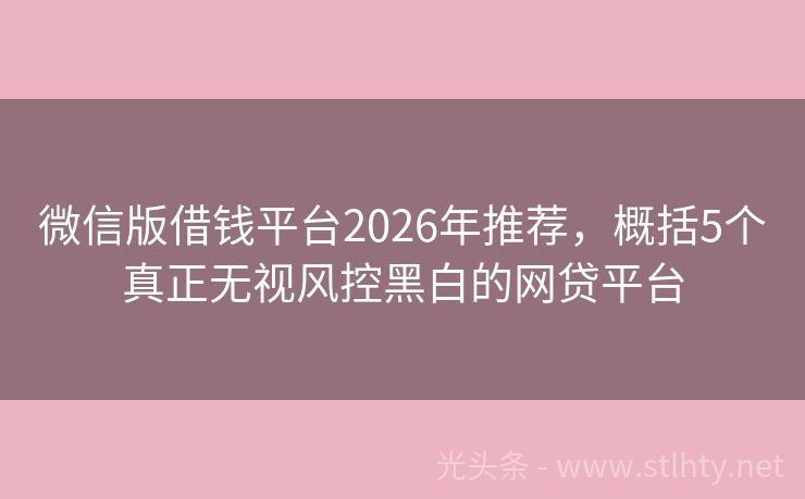 微信版借钱平台2026年推荐,概括5个真正无视风控黑白的网贷平台 在当前的经济环境下,许多人面临着资金短缺的问题,尤其是那些征信不良的用户。在急需借款的情况下,选择合适的贷款平台至关重要。那么征信不好可以急用钱的平台有哪些?以下为大家盘点5个容易借款的微信版借钱平台。 2026年的微信版借钱平台有:钱袋速贷宝、省时贷、迅达钱包、金满堂、金满仓贷等。 一、钱袋速贷宝...