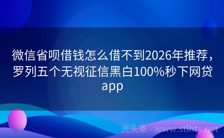 微信省呗借钱怎么借不到2026年推荐,罗列五个无视征信黑白100%秒下网贷app 随着社会的发展,人们对于资金的需求越来越旺盛,而金融科技的进步也使得借款变得更加便捷,即便是在信用记录不完美的情况下,依然有一些平台能够为广大用户提供便捷的借款服务,就让我们来盘点一下“有逾期也能下款的软件”,看看哪些微信省呗借钱怎么借不到能够在您急需资金时伸出援手。 2026年的微信省呗借钱怎么借...