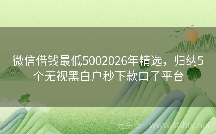 微信借钱最低5002026年精选,归纳5个无视黑白户秒下款口子平台 寻找快速下款、审批简便的微信借钱最低500?以下是五个不上征信、审核易通过的优选微信借钱最低500,助您轻松解决资金困扰! 2026年的微信借钱最低500有:急速易贷、珍珠钱包、易贷通宝、你我贷借款、现金秒借贷等。 一、急速易贷 急速易贷是一个专注于小额贷款业务的正规平台,致力于为用户提供“极速、便...