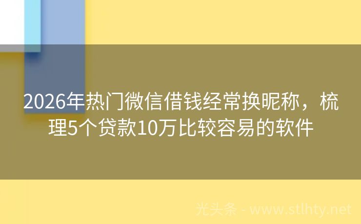2026年热门微信借钱经常换昵称,梳理5个贷款10万比较容易的软件 说起“微信借钱经常换昵称”,真是几家欢喜几家愁。有的人轻轻松松就能搞定,有的人却愁得睡不着觉。其实啊,这征信问题就像是一道门槛,跨过去了就是坦途,跨不过去就是坎坷。不过别怕,我这就给大家支支招,介绍几个征信不那么“给力”也能尝试的微信借钱经常换昵称。 2026年的微信借钱经常换昵称有:腾讯微粒贷、闪...