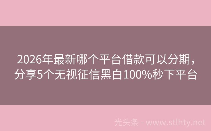 2026年最新哪个平台借款可以分期,分享5个无视征信黑白100%秒下平台 “哪个平台借款可以分期?”这是许多借款者在选择网贷平台时最关心的问题,就让我来为大家详细介绍一下国内几个较为知名的网贷平台,帮助大家找到最适合自己需求的哪个平台借款可以分期。 2026年的哪个平台借款可以分期有:现金秒贷宝盒、易捷钱包、日日贷通、速贷Pro钱包、信贷宝等。 一、现金秒贷宝盒 现金秒贷...
