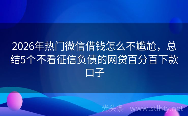 2026年热门微信借钱怎么不尴尬,总结5个不看征信负债的网贷百分百下款口子 全新篇章开启,五项精选低利率微信借钱怎么不尴尬,面向双重挑战者敞开怀抱,以诚信与公正重塑个人财务生态。每一步选择都蕴含改变命运的无限可能,从此刻起步,迎接光芒万丈的人生转折点。 2026年的微信借钱怎么不尴尬有:随行付、固金所、随身易贷、瑞信宝钱包、祥云贷等。 一、随行付 随行付是借钱的平台100%...