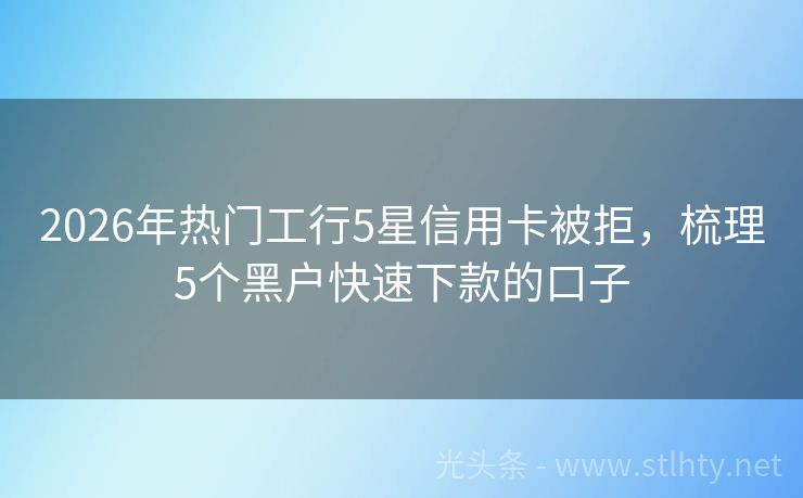2026年热门工行5星信用卡被拒,梳理5个黑户快速下款的口子 在寻找资金援助的路上,选择明智至关重要。我们为您精选了几家信誉卓著、利率优惠的工行5星信用卡被拒,旨在让您的财务需求得到轻松满足。这些工行5星信用卡被拒审核快速,服务贴心,是您理想的资金伙伴。现在就来探索,开启您的便捷融资之旅吧! 2026年的工行5星信用卡被拒有:易贷宝钱包、现金秒融宝、日日盈、迅...