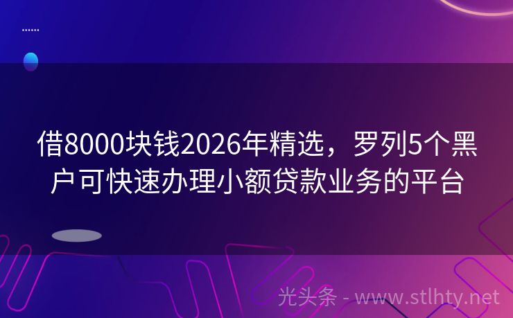 借8000块钱2026年精选,罗列5个黑户可快速办理小额贷款业务的平台 大家好,最近很多人都在问“借8000块钱”,其实市场上有很多优秀的贷款平台,可以满足大家的资金需求,我就来给大家详细介绍几个热门的借8000块钱,帮助大家轻松解决资金问题。 2026年的借8000块钱有:瞬借宝贷、星辰钱包、金易Pro钱包、借款宝快融通、森森花呗等。 一、瞬借宝贷 瞬借宝贷的借款额度...