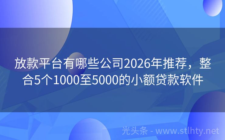 放款平台有哪些公司2026年推荐,整合5个1000至5000的小额贷款软件 近年来,随着金融科技的飞速发展,各种网贷平台如雨后春笋般涌现,许多朋友关心的问题是:“放款平台有哪些公司?”我就来为大家解答这个疑问,并为大家推荐几个实力强大、信誉良好的放款平台有哪些公司,这些平台不仅可以帮助大家解决资金周转的难题,还能让大家在享受便捷服务的同时,不用担心征信问题。 2026年的放...