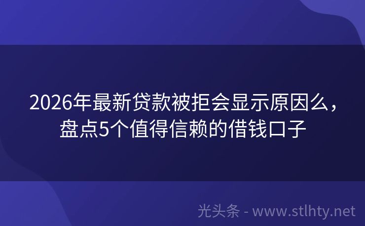 2026年最新贷款被拒会显示原因么,盘点5个值得信赖的借钱口子 在这个快节奏的时代,我们时常会遇到资金周转的难题,不用愁,今天我要给大家推荐几个不看大数据、不看征信,100%通过率的贷款被拒会显示原因么,让你轻松借到5000元,解决燃眉之急!就让我为大家详细介绍这五个贷款被拒会显示原因么,让您的借款之路更加顺畅! 2026年的贷款被拒会显示原因么有:借贷宝通、福...