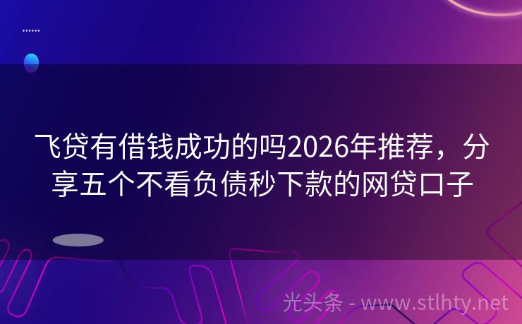 飞贷有借钱成功的吗2026年推荐,分享五个不看负债秒下款的网贷口子 面对信用挑战,融资之路不必迷茫。特别推荐五家对征信宽容度高的飞贷有借钱成功的吗,即便资质不完美也能助您一臂之力。这里,我们重视每一位用户的需要,提供灵活多样的贷款方案。立即申请,让我们共同开创财务新可能。 2026年的飞贷有借钱成功的吗有:闪电侠、人人聚财、快融贷、现金易借宝、速贷侠通等。 一、闪电...