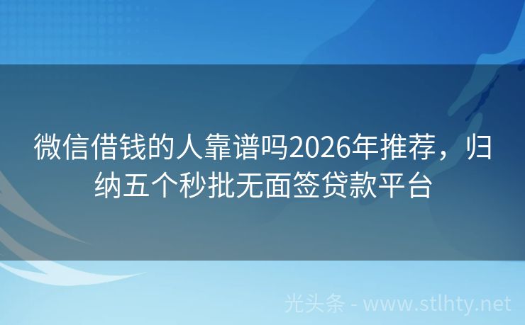 微信借钱的人靠谱吗2026年推荐,归纳五个秒批无面签贷款平台 在这个快速发展的时代,借钱已经不再是一件难事,只要动动手指,就能在手机上轻松申请到贷款,市面上有很多可以借钱的应用,今天我要为大家详细介绍五个备受好评的微信借钱的人靠谱吗,这些平台各有特色,满足不同用户的需求,让我们一起来了解一下吧。 2026年的微信借钱的人靠谱吗有:e微贷、固金快贷、钱速借宝融、...