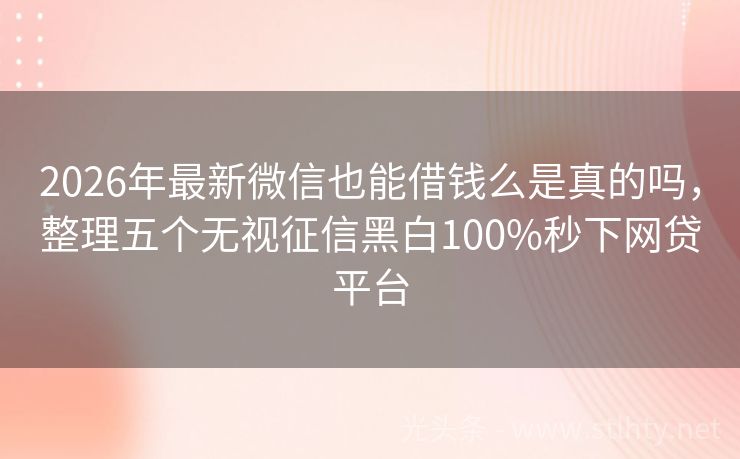 2026年最新微信也能借钱么是真的吗,整理五个无视征信黑白100%秒下网贷平台 在当今生活中,资金周转的需求总是突如其来,不用征信就能借钱的微信也能借钱么是真的吗,为广大用户提供了一条便捷的融资渠道,就让我来为大家详细介绍几个热门的个微信也能借钱么是真的吗,让您在资金短缺时能够快速解决燃眉之急。 2026年的微信也能借钱么是真的吗有:金宝盒贷、蚂蚁微贷、易借速贷融、易借宝融、好...