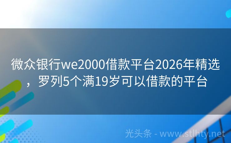 微众银行we2000借款平台2026年精选,罗列5个满19岁可以借款的平台 大家好,今天我要给大家介绍一款非常实用的借款平台——“微众银行we2000借款平台”,在这个快速发展的时代,资金周转的需求越来越普遍,而选择一个安全、可靠、高效的借款平台显得尤为重要,我将为大家推荐五个热门的微众银行we2000借款平台,这些平台不仅具有丰富的借款额度,还有各自独特的优势和服务,相信...