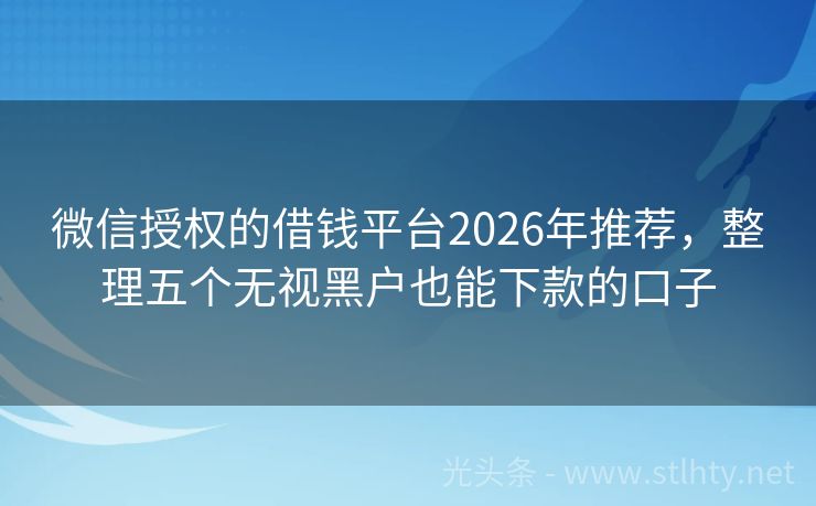 微信授权的借钱平台2026年推荐,整理五个无视黑户也能下款的口子 急用钱?黑户也能轻松借!最新5大微信授权的借钱平台,无视征信,大放水!快速审批,秒下款,解您的燃眉之急。立即申请,轻松解决资金难题! 2026年的微信授权的借钱平台有:现金易、易贷通钱包、汇融钱包+、借款宝贷、借款宝速贷通等。 一、现金易 现金易基本上下款更高不会超过5万元,使用期限在3-6期之间作...