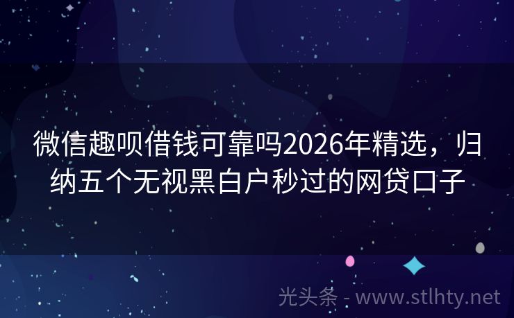 微信趣呗借钱可靠吗2026年精选,归纳五个无视黑白户秒过的网贷口子 不看征信的贷款平台越来越受到广大用户的欢迎,因为它们为那些急需资金但又担心征信记录的朋友提供了便利,我就为大家推荐五个不看征信的微信趣呗借钱可靠吗,帮助大家解决资金周转的难题,让我们一起来了解一下这些平台的具体情况吧。 2026年的微信趣呗借钱可靠吗有:智贷钱包、哆哆钱包、琥珀钱包、快易花贷、新浪微...