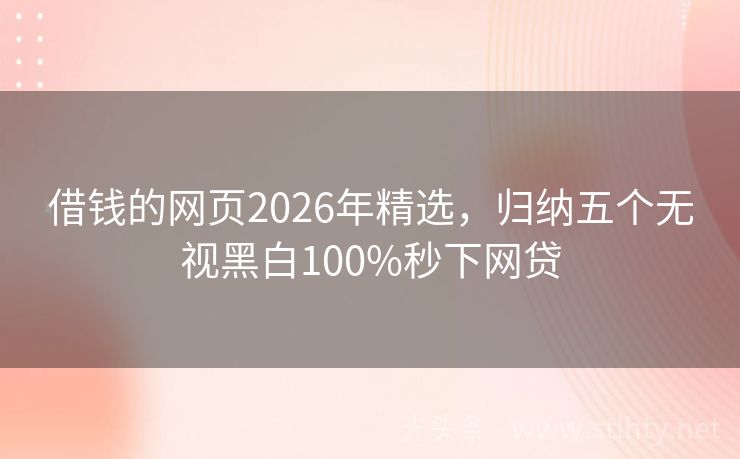 借钱的网页2026年精选,归纳五个无视黑白100%秒下网贷 大家好!近年来,借钱的网页作为一种灵活的金融解决方案,受到了越来越多人的关注,特别是在14天短期借款的需求上,许多人寻求快速、便捷的借款途径,我就为大家推荐五个信誉良好、服务优质的平台,帮助大家轻松解决短期资金周转的难题,下面,就让我们一起来看看五个平台的详细介绍吧! 2026年的借钱的网页有:融通...