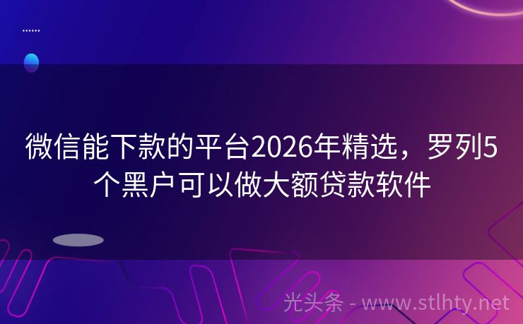 微信能下款的平台2026年精选,罗列5个黑户可以做大额贷款软件 面对资金困境,急需周转?别担心,我们精选了5个微信能下款的平台,专为黑户及严重逾期负债者设计,助你轻松度过财务难关。立即申请,快速下款,解你所急! 2026年的微信能下款的平台有:惠商易借、融逸速贷、随身贷、易融贷通、哆哆贷等。 一、惠商易借 惠商易借借款期限灵活,最长可达12个月贷款平台特点:息费...