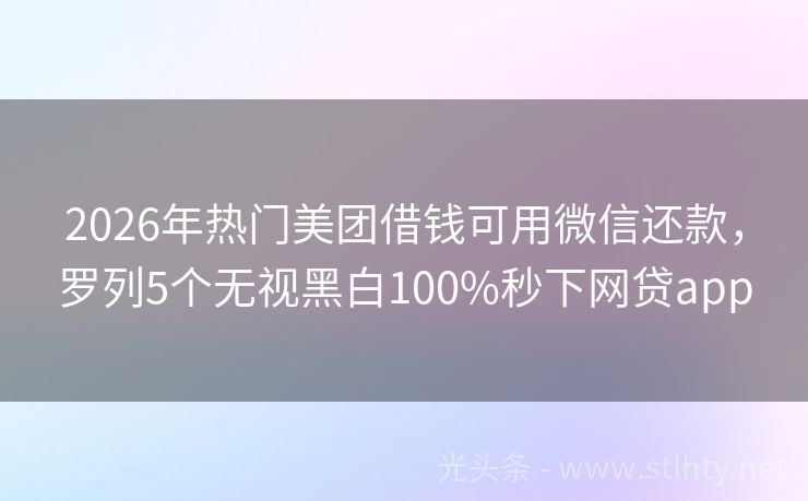 2026年热门美团借钱可用微信还款,罗列5个无视黑白100%秒下网贷app 信用不完美?别担心!这5个美团借钱可用微信还款,无视负债综合评分不足,轻松借到款。快来试试,让资金问题不再是难题! 2026年的美团借钱可用微信还款有:钱袋易借通、快捷宝融、借钱花、易贷Pro钱包、钻石分期等。 一、钱袋易借通 钱袋易借通的借款额度最高不超过10万元,最低借款额度不得低于3000元,...