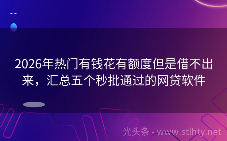 2026年热门有钱花有额度但是借不出来,汇总五个秒批通过的网贷软件 黑户也能轻松借!5大有钱花有额度但是借不出来任你挑,逾期负债高不再是难题。快来试试,让资金问题不再困扰你的生活! 2026年的有钱花有额度但是借不出来有:闪贷侠、闪银通、借贷宝易融、小麦粒、融易宝钱包等。 一、闪贷侠 闪贷侠是一款综合金融服务平台,由持牌金融机构推出。提供包括个人消费信贷在内的多种金...