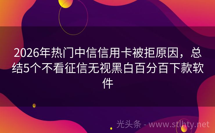 2026年热门中信信用卡被拒原因,总结5个不看征信无视黑白百分百下款软件 近年来,网贷市场发展迅速,为广大用户提供了便捷的金融服务,很多人在申请贷款时,都担心征信和负债问题会影响审批结果,我就为大家推荐几个“2026不看征信不看负债的网贷”中信信用卡被拒原因,让您在资金周转上更加轻松自如。 2026年的中信信用卡被拒原因有:现金易贷通、日日贷通、借款宝速融通、现金无忧、借...