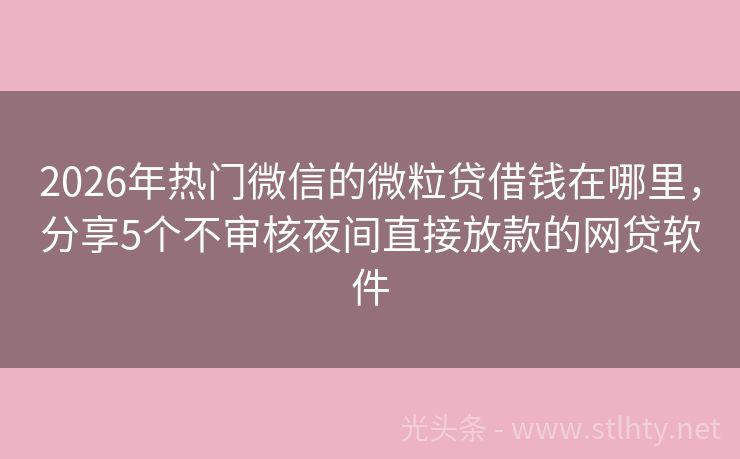 2026年热门微信的微粒贷借钱在哪里,分享5个不审核夜间直接放款的网贷软件 “高炮都不给下款了”,在这个信贷市场日益严格的当下,不少借款人感叹融资渠道越来越窄,但别急,今天我就为大家推荐几个信誉良好、服务优质的微信的微粒贷借钱在哪里,让你在急需资金时,依然能够找到可靠的借款渠道。 2026年的微信的微粒贷借钱在哪里有:借贷易融贷、哆宝钱包、借款宝速贷融、闪贷速借宝、瞬贷通等...