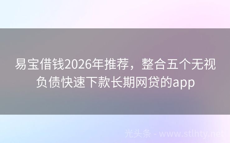 易宝借钱2026年推荐,整合五个无视负债快速下款长期网贷的app “您好,最近有很多网友遇到了这样一个问题:易宝借钱有额度借不出来,这种情况确实让人头疼,但别急,今天我就来为大家推荐几个实力强大、服务优质的易宝借钱,让您轻松解决资金难题。” 2026年的易宝借钱有:钱速借融宝、安心钱包、乐融钱包、琥珀钱包、钱速融易等。 一、钱速借融宝 钱速借融宝是征信不好能贷款的...