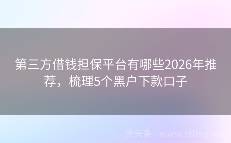 第三方借钱担保平台有哪些2026年推荐,梳理5个黑户下款口子 大家好,今天咱们聊一聊“第三方借钱担保平台有哪些”这个话题,在众多网贷平台中,有哪些平台对于征信花了的用户来说,下款最容易呢?我将为大家详细介绍五个这样的第三方借钱担保平台有哪些,帮助大家解决资金难题。 2026年的第三方借钱担保平台有哪些有:微粒分期、辉誉金融、瑞信Pro钱包、速享Pro+钱包、快...