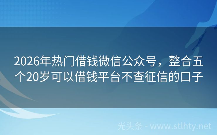 2026年热门借钱微信公众号,整合五个20岁可以借钱平台不查征信的口子 大家好,今天我要给大家介绍的是几个无视征信也能轻松下款的借钱微信公众号,在现实生活中,我们可能会遇到急需用钱,但又因为各种原因征信不佳的情况,别担心,以下这几个借钱微信公众号平台或许能帮到你,就让我为大家详细介绍一下这些平台的额度、优势和特色服务吧。 2026年的借钱微信公众号有:星愿贷宝、米米贷、...