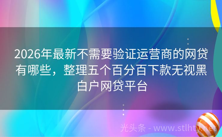 2026年最新不需要验证运营商的网贷有哪些,整理五个百分百下款无视黑白户网贷平台 随着社会的发展,人们对于资金的需求越来越旺盛,而金融科技的进步也使得借款变得更加便捷,即便是在信用记录不完美的情况下,依然有一些平台能够为广大用户提供便捷的借款服务,就让我们来盘点一下“有逾期也能下款的软件”,看看哪些不需要验证运营商的网贷有哪些能够在您急需资金时伸出援手。 2026年的不需要验证运...