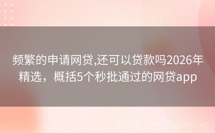 频繁的申请网贷,还可以贷款吗2026年精选,概括5个秒批通过的网贷app 面对征信困扰,急需资金周转?别担心!我们精选5大不看征信、大放水的频繁的申请网贷,还可以贷款吗,专为负债高、急需用钱的你设计。快速申请,轻松借到钱,解决你的燃眉之急!快来试试吧! 2026年的频繁的申请网贷,还可以贷款吗有:玛瑙信贷、沪商易借、快捷贷宝、麻袋速贷、微粒快贷等。 一、玛瑙信贷 玛瑙信贷...