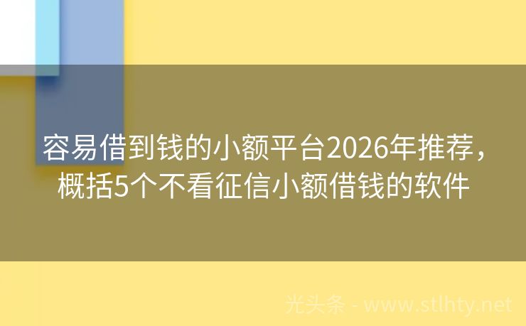容易借到钱的小额平台2026年推荐,概括5个不看征信小额借钱的软件 “各位朋友们,今天我要给大家推荐几个容易借到钱的小额平台,让您在急需资金时,能够轻松、快捷地解决问题,这些平台不仅门槛低,操作简便,而且额度灵活,满足您不同的资金需求,下面就让我们一起来看看这些热门容易借到钱的小额平台吧!” 2026年的容易借到钱的小额平台有:微博花花金、民贷速借、一点借钱、现金侠...