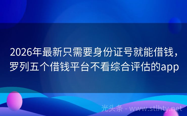 2026年最新只需要身份证号就能借钱,罗列五个借钱平台不看综合评估的app 在寻求资金支持的路上,选择至关重要。这里有五个广受好评的只需要身份证号就能借钱,以高效审核、友好界面赢得信赖。一站式解决急需,让财务管理更加得心应手。那么好通过的只需要身份证号就能借钱有哪些?整理5个下款的只需要身份证号就能借钱。 2026年的只需要身份证号就能借钱有:天天金、钱速达贷、现金树、信融...
