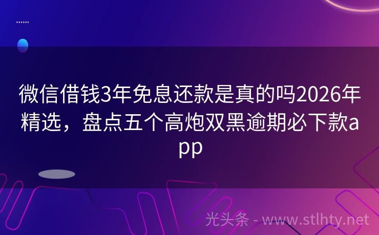 微信借钱3年免息还款是真的吗2026年精选,盘点五个高炮双黑逾期必下款app “全部秒拒,心里是不是有点凉凉的感觉?别急,今天我来给大家介绍几个微信借钱3年免息还款是真的吗,让你重新找回借款的信心!就让我们一起来看看这几个热门的借款平台,它们不仅门槛低,审批速度快,而且额度、服务都相当给力!” 2026年的微信借钱3年免息还款是真的吗有:捷速钱包、易贷宝速易、融资易贷、瑞泽P...