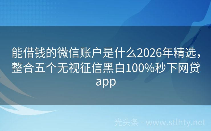 能借钱的微信账户是什么2026年精选,整合五个无视征信黑白100%秒下网贷app 急需资金周转?别怕逾期记录!以下五个能借钱的微信账户是什么助你轻松下款,门槛低至尘埃,让你的钱包瞬间鼓起来。 2026年的能借钱的微信账户是什么有:闪银通、金瑞龙、鑫贷钱包、现金卡、甄宝分期等。 一、闪银通 闪银通是最近好下款的征信烂了借款秒到账,是不看征信审核松的口子,借款期限3-12个月,借款审...