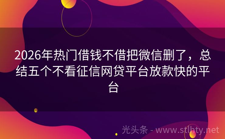 2026年热门借钱不借把微信删了,总结五个不看征信网贷平台放款快的平台 “借钱不借把微信删了”,这是许多人在面对资金困境时很重要。无论是生活开支还是事业发展,资金总是不可或缺的一部分。今天,我就为大家带来了几家信誉良好、服务优质的借贷平台推荐,它们不仅额度高、放款快,而且利率合理、服务贴心,让你在借款的过程中更加省心、放心。 2026年的借钱不借把微信删了有:智贷钱包、...