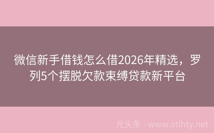 微信新手借钱怎么借2026年精选,罗列5个摆脱欠款束缚贷款新平台 在寻找快速、便捷的微信新手借钱怎么借?来看看这些易通过的微信新手借钱怎么借,不上征信不查大数据,让您轻松下款,解决资金难题。 2026年的微信新手借钱怎么借有:借钱快易借、闪电宝、口袋金贷、飞融贷、拍拍贷借款等。 一、借钱快易借 借钱快易借是不看重征信和负债的贷款口子年化综合息费率(单利)7.2%起...